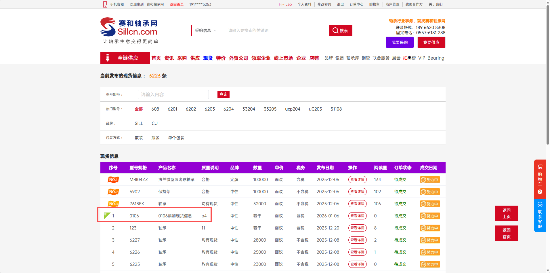 您所发布的现货信息,将会在PC端网站导航栏的【现货】栏目中进行公开展示,供潜在采购商浏览与联系。
