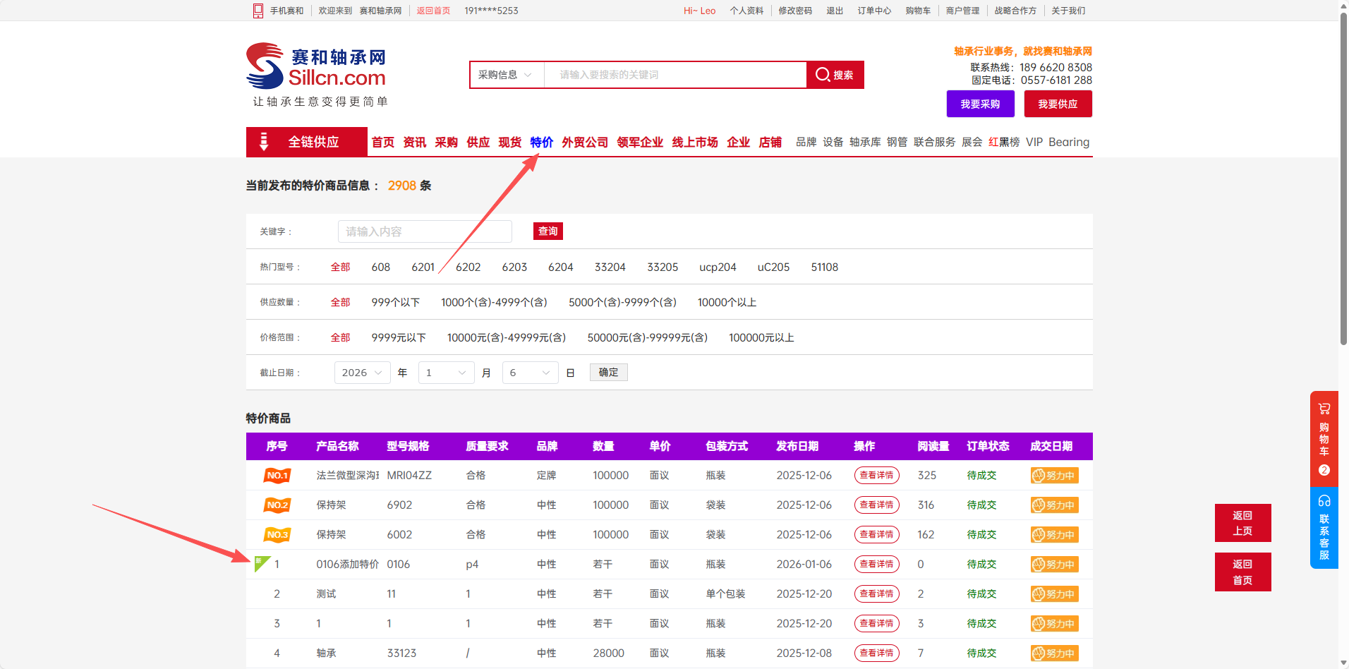 您所发布的特价信息,将会在PC端网站导航栏的【特价】栏目中进行公开展示,供用户浏览与选购。