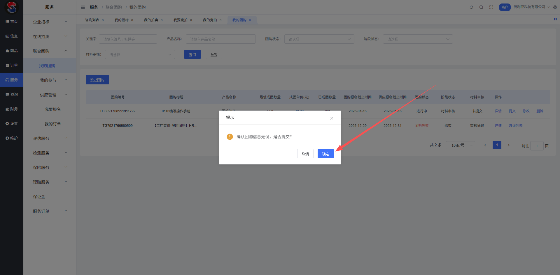 登录商户后台,依次点击【服务】-【我的团购】,进入团购管理页面,点击【发起团购】按钮。