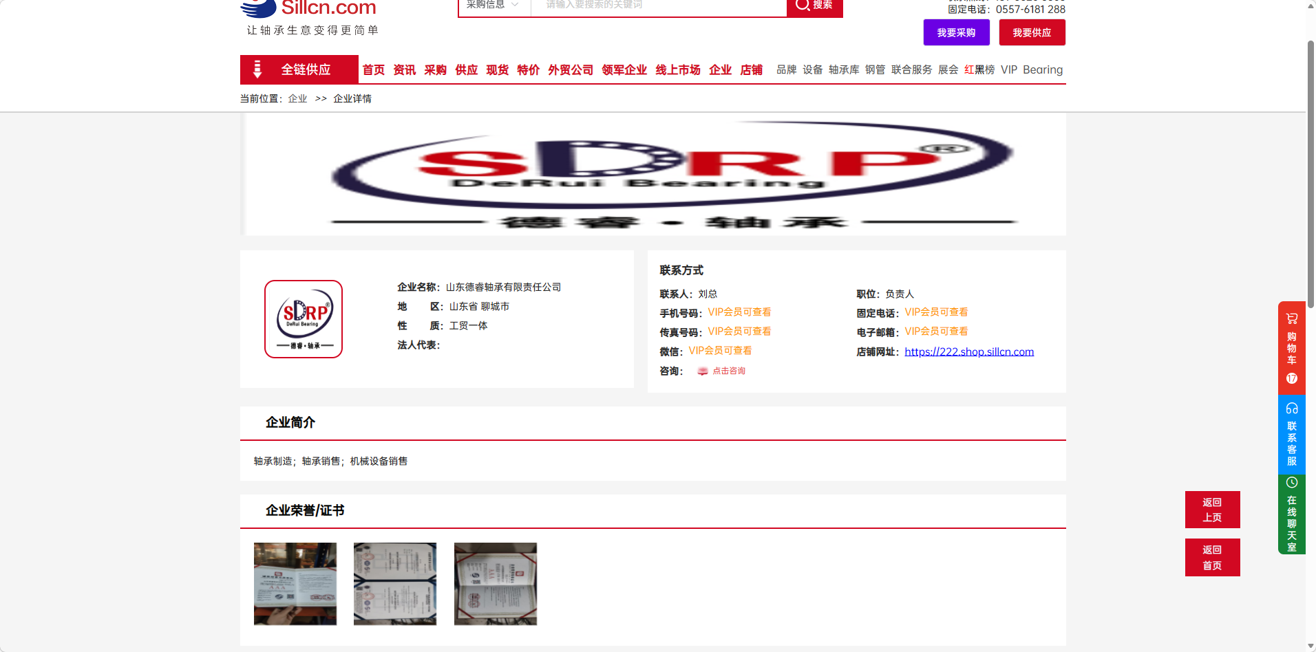 页面企业推荐【点击进入】,是页面核心信息区,主要有企业身份概要、联系方式、企业简介与资质等
