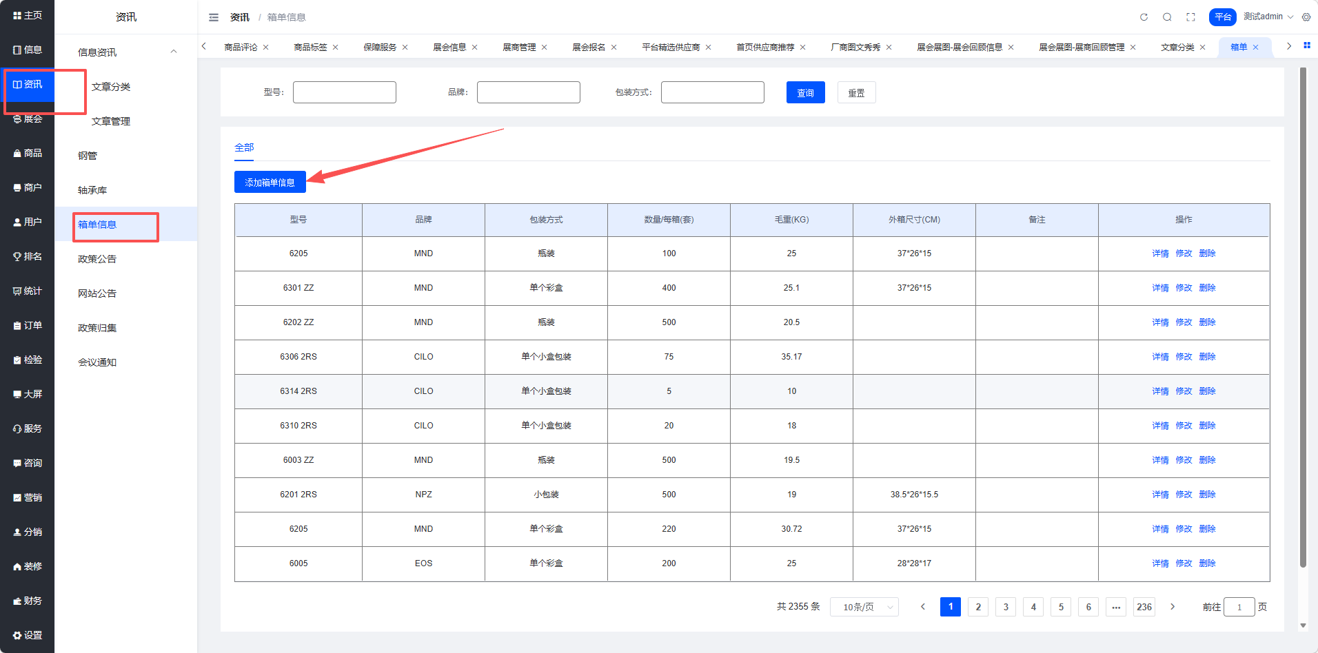 平台路径–【咨询】–【箱单信息】–【添加箱单信息】