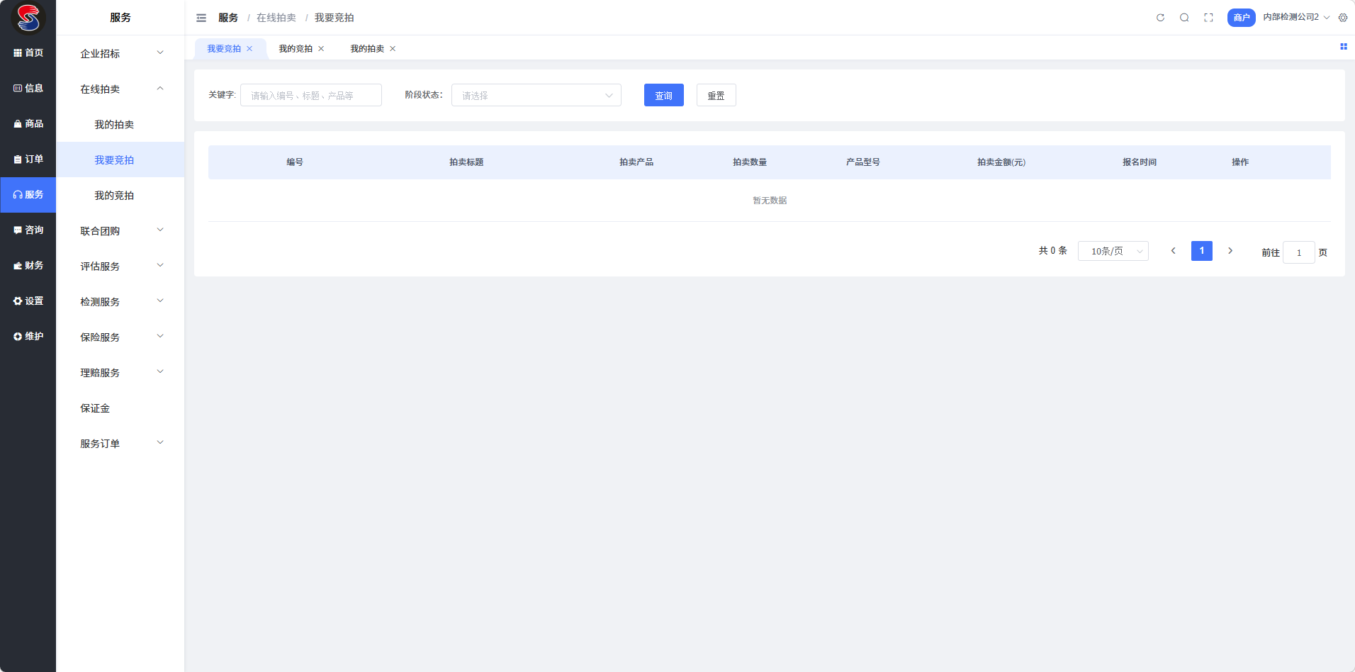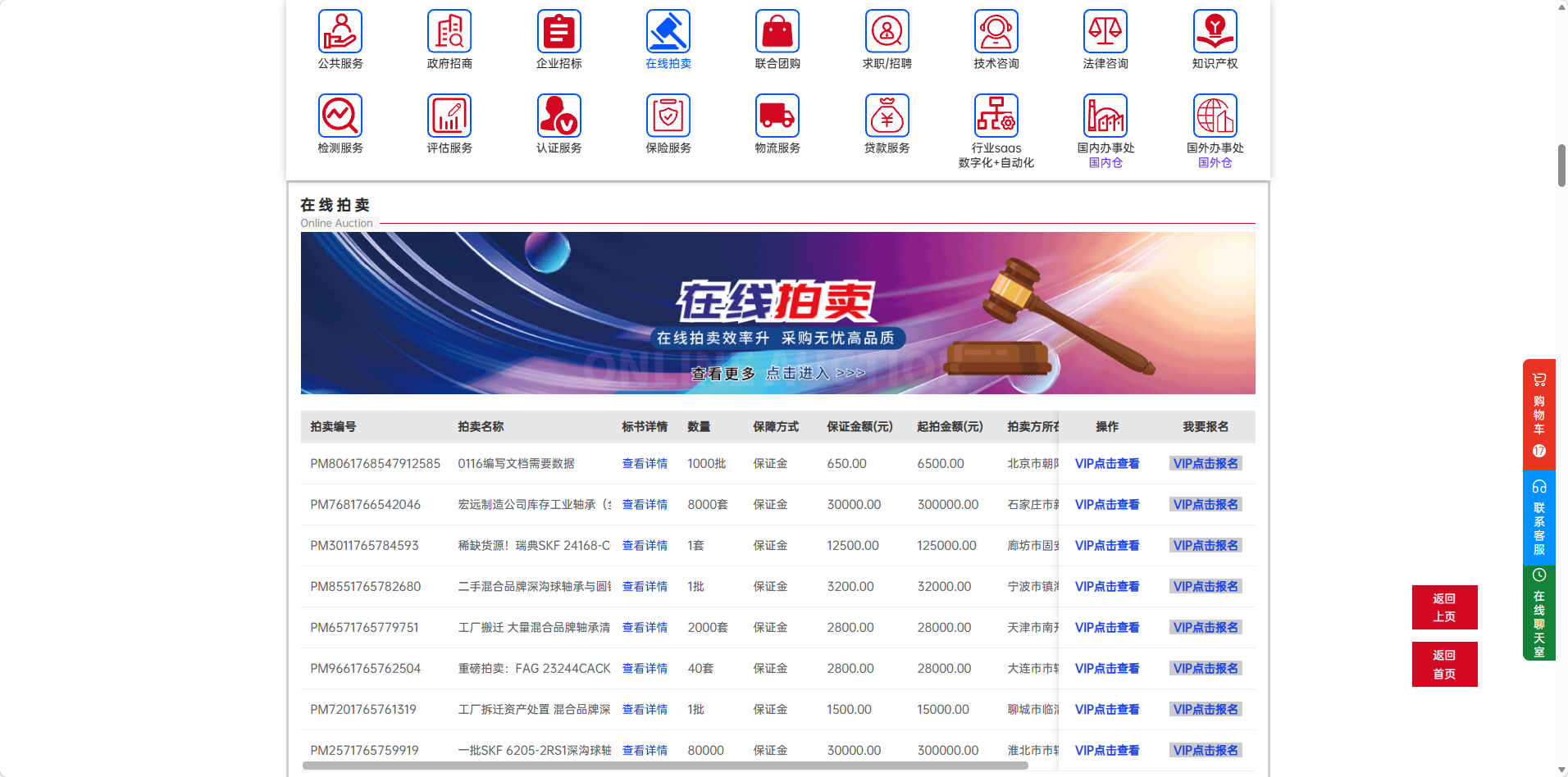 平台路径【服务】–【在线拍卖-我要竞拍】–【】