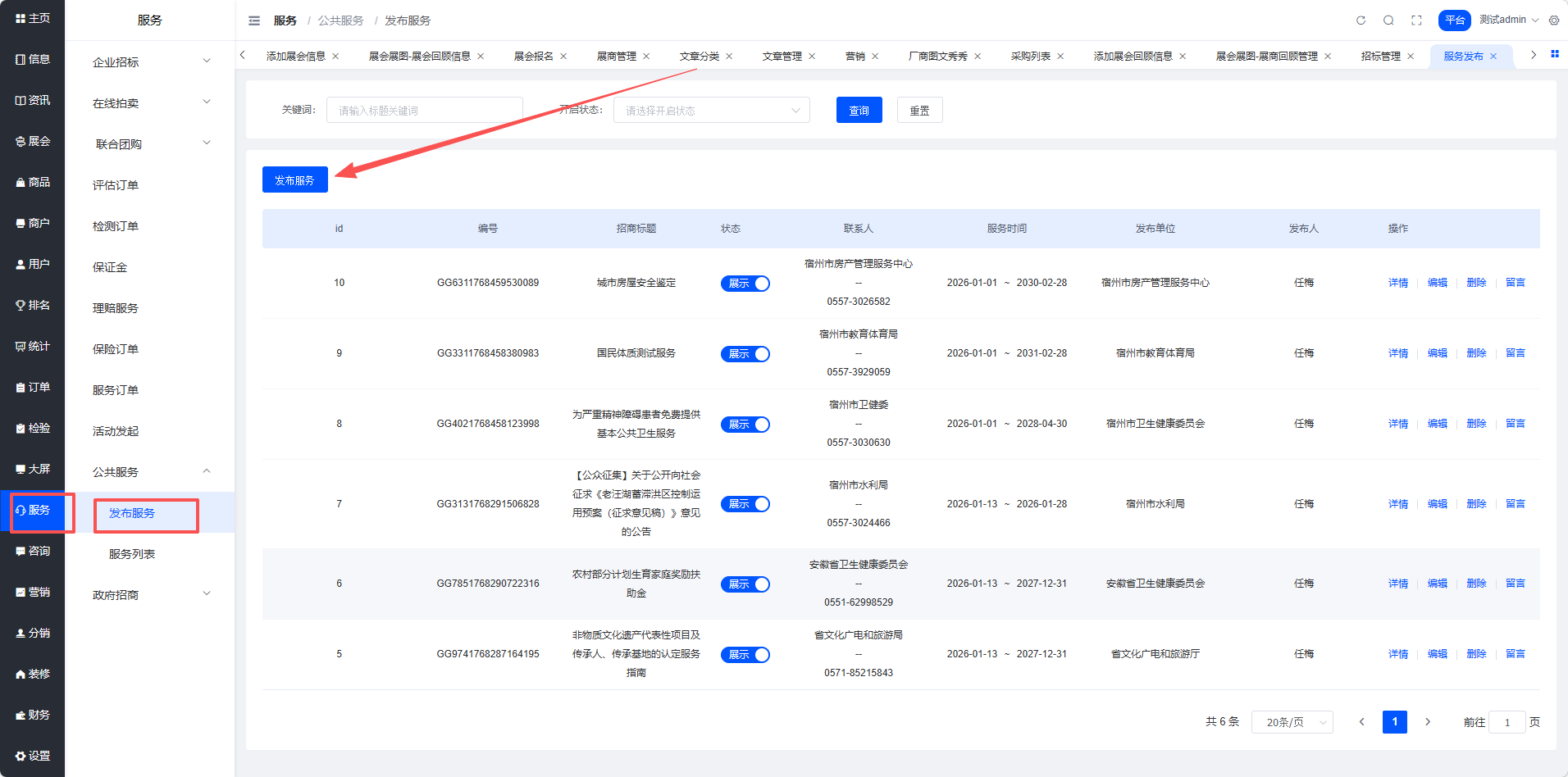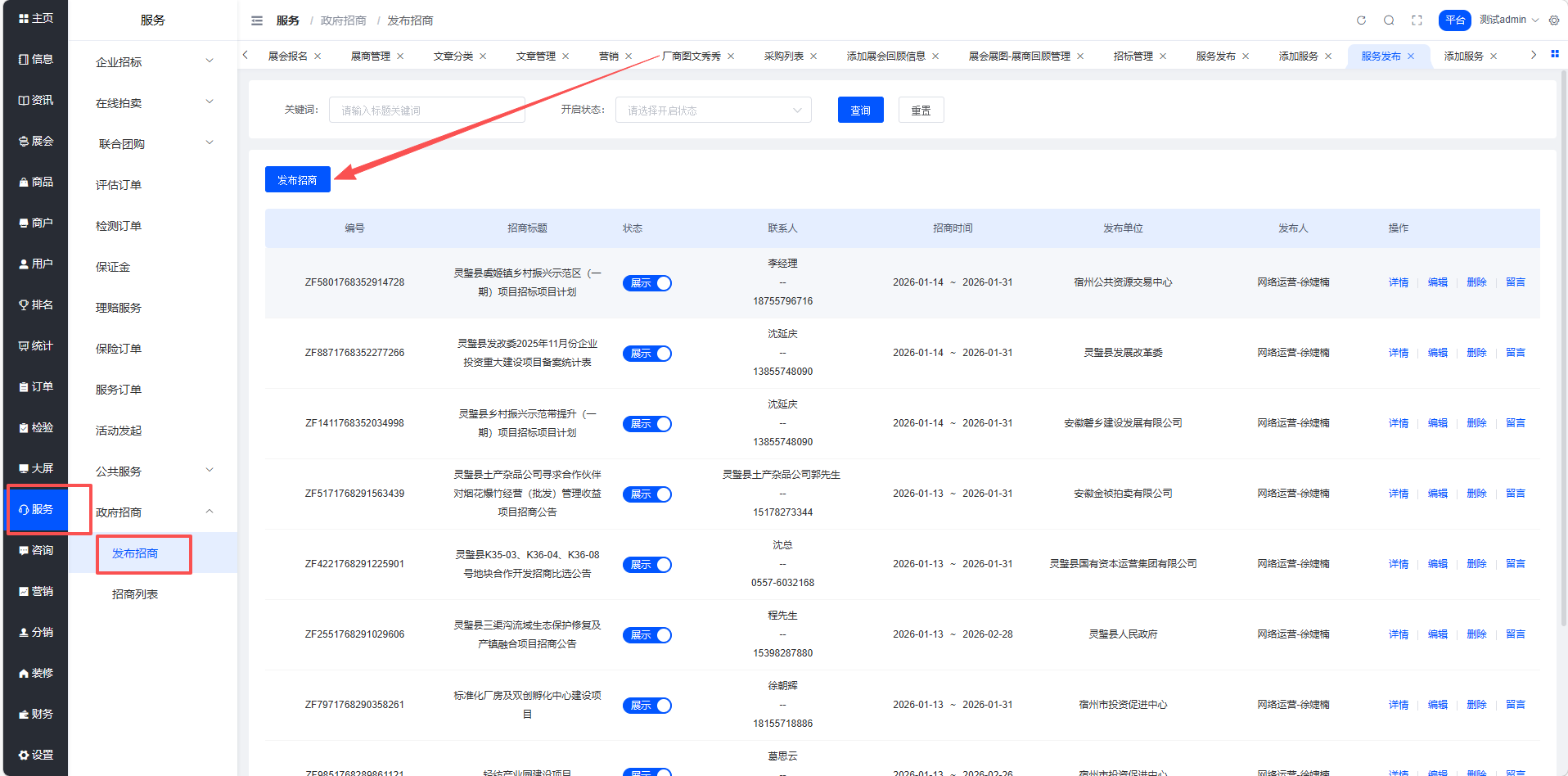 平台路径:【服务】–【政府招商–发布招商】–【发布招商】