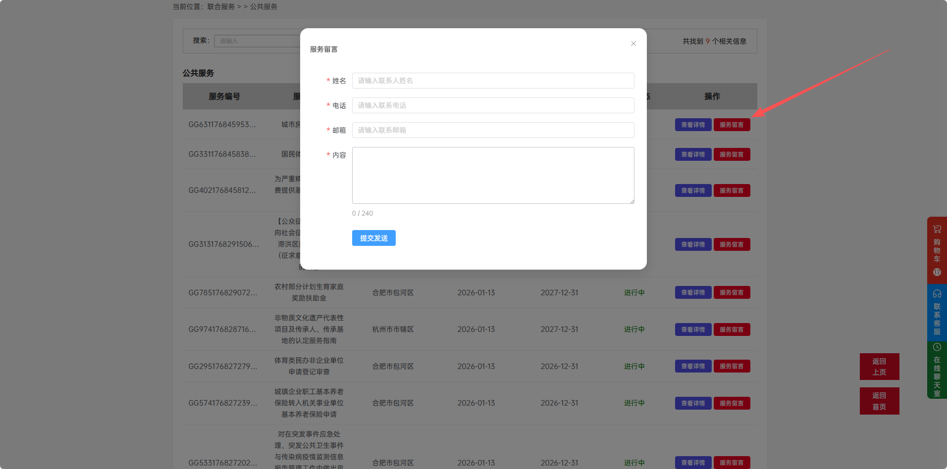点击闪烁的【点击进入】,在操作中可进行【服务留言】