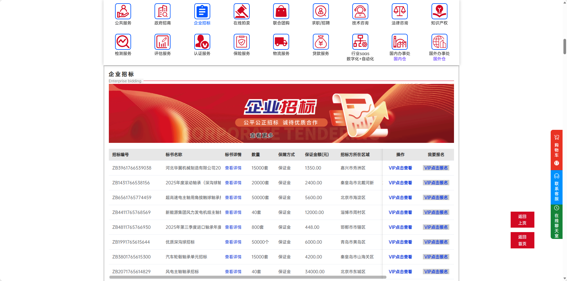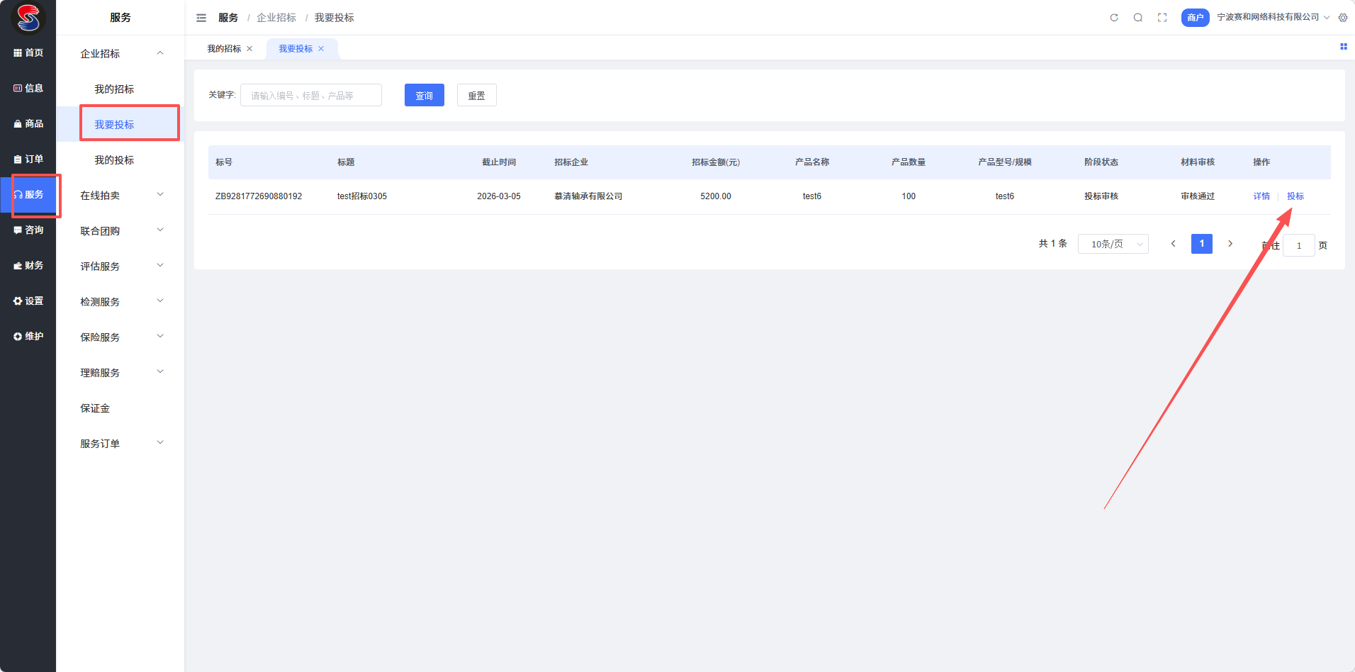点击闪烁的【点击进入】,在操作中可进行【招标中】跳转到商户