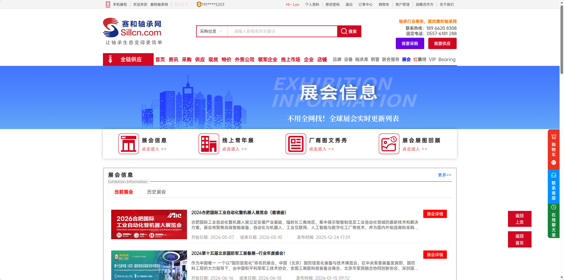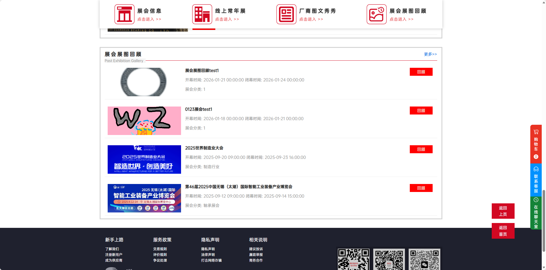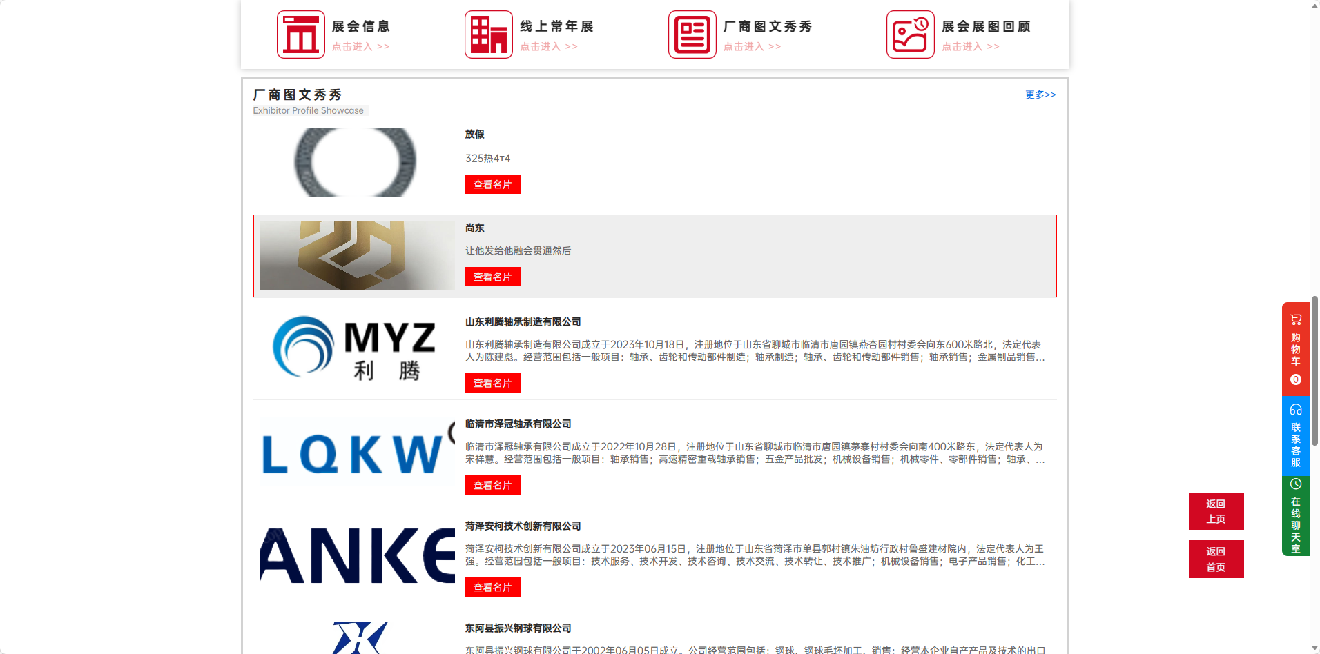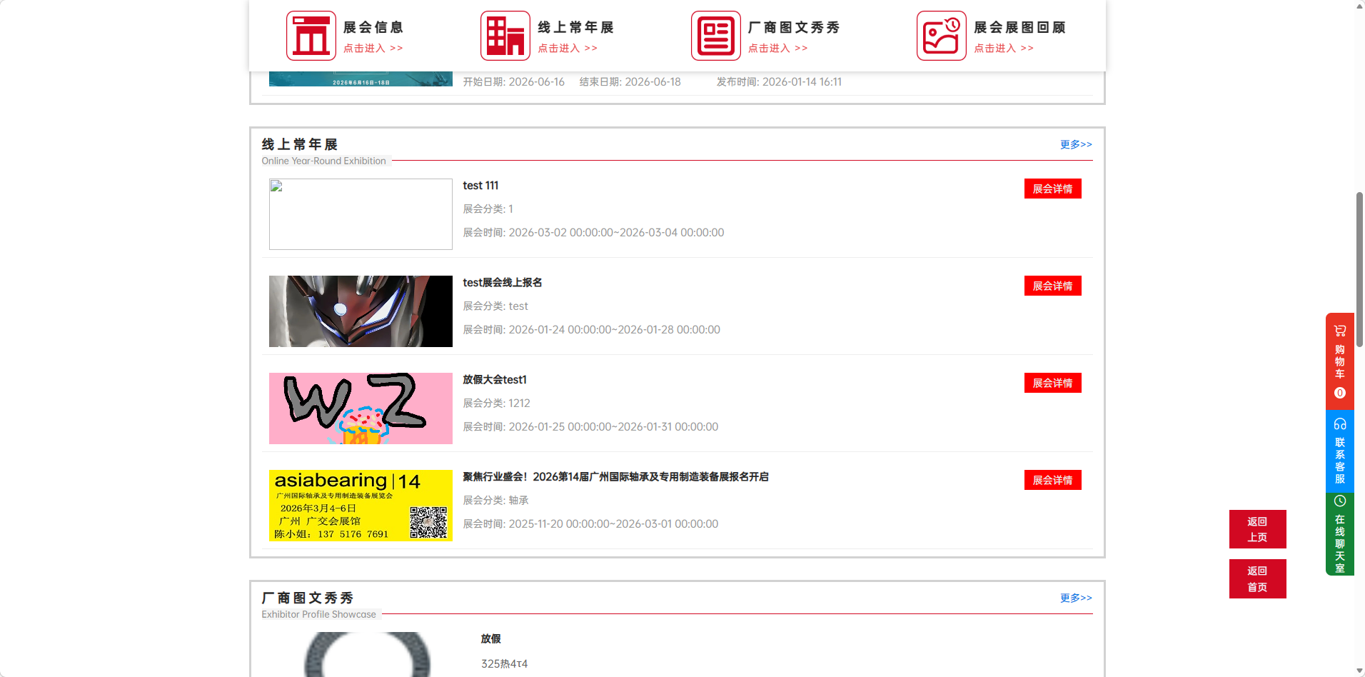 导航栏入口:平台主导航栏设有“展会信息”“线上常年展”等4个快捷入口,点击后进入。