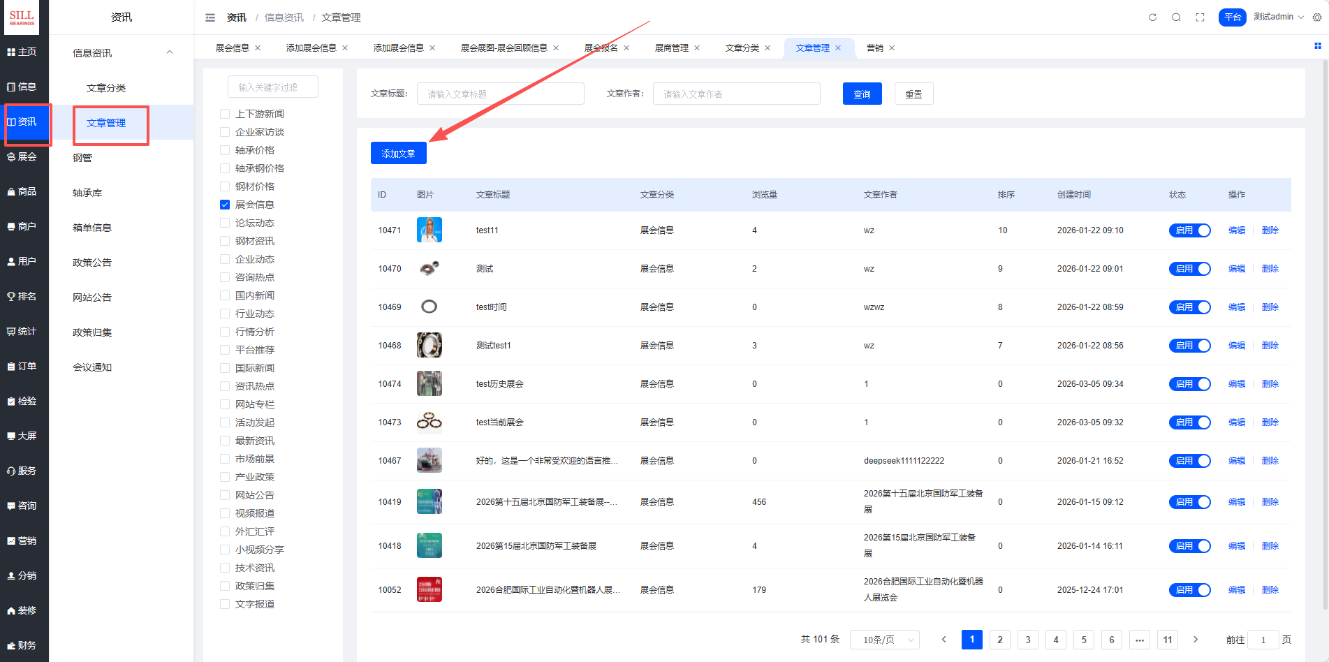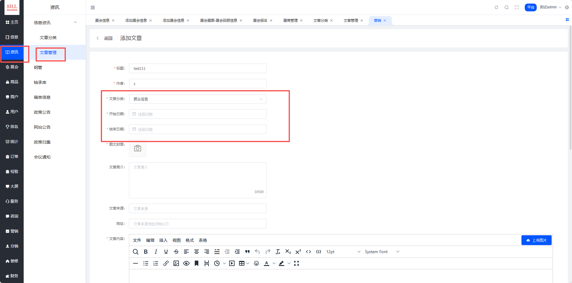 平台路径:【咨询】–【信息咨询-文章管理】–【过滤展会信息】–【添加文章】