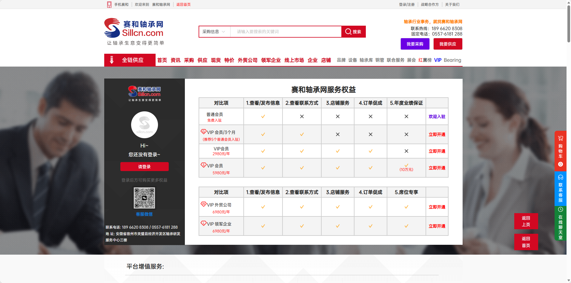目录 搜索 赛和网介绍登录注册认证商户个人资料修改密码订单中心订单中心全款订单合同订单活动列表我发布的我参与的收藏夹收藏的宝贝收藏的店铺历史记录我的足迹客户服务售后/退款我的咨询账户设置收货地址个人资料账号密码规则协议购物车商户管理我要采购/我要供应全链供应首页一板块-广告信息二板块-品牌推广三板块-赛和小店四板块-智能推荐五板块-公共信息平台六板块-赛和进出口等6大板块七板块-供应商推荐八板块-政策公告九板块-政策归集十板块-会议通知十一板块-活动公告资讯采购、供应、现货、特价外贸公司、领军企业线上市场企业店铺品牌设备轴承库钢管联合服务展会红黑榜VIPBearing 暂无相关搜索结果! 本文档使用 MinDoc 发布 VIP #VIP模块功能说明首页导航栏进入:请在官网首页顶部的导航栏中找到并点击【VIP】服务入口。立即开通VIP:进入VIP介绍页面后,仔细阅读权益说明,然后点击页面中的【立即开通】按钮上传凭证并提交申请:在申请页面,按要求上传您的付款凭证或相关资质文件,然后提交VIP开通申请,等待平台审核通过。文档更新时间: 2026-03-05 13:05 作者:Leo