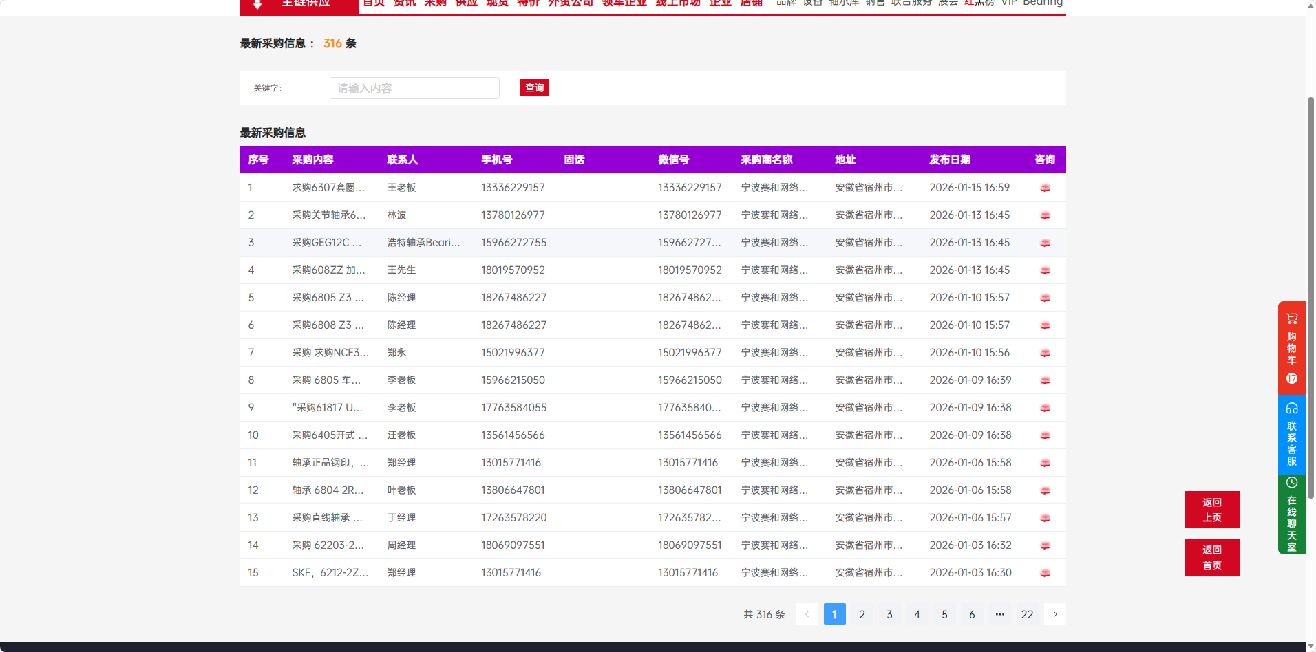 信息时效性:列表默认会按发布时间倒序排列,优先展示最新的采购或供应需求。建议您及时浏览,以免错过商机。