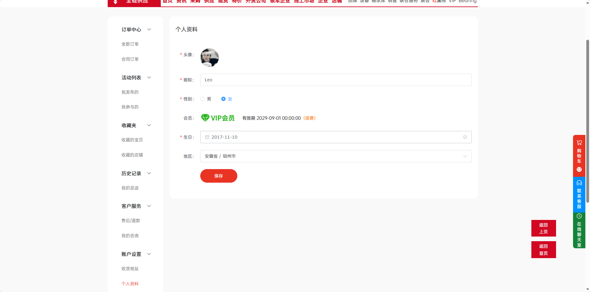 在个人中心点击【个人资料】,即可进入个人资料管理页面,查看和编辑您的账户信息。
